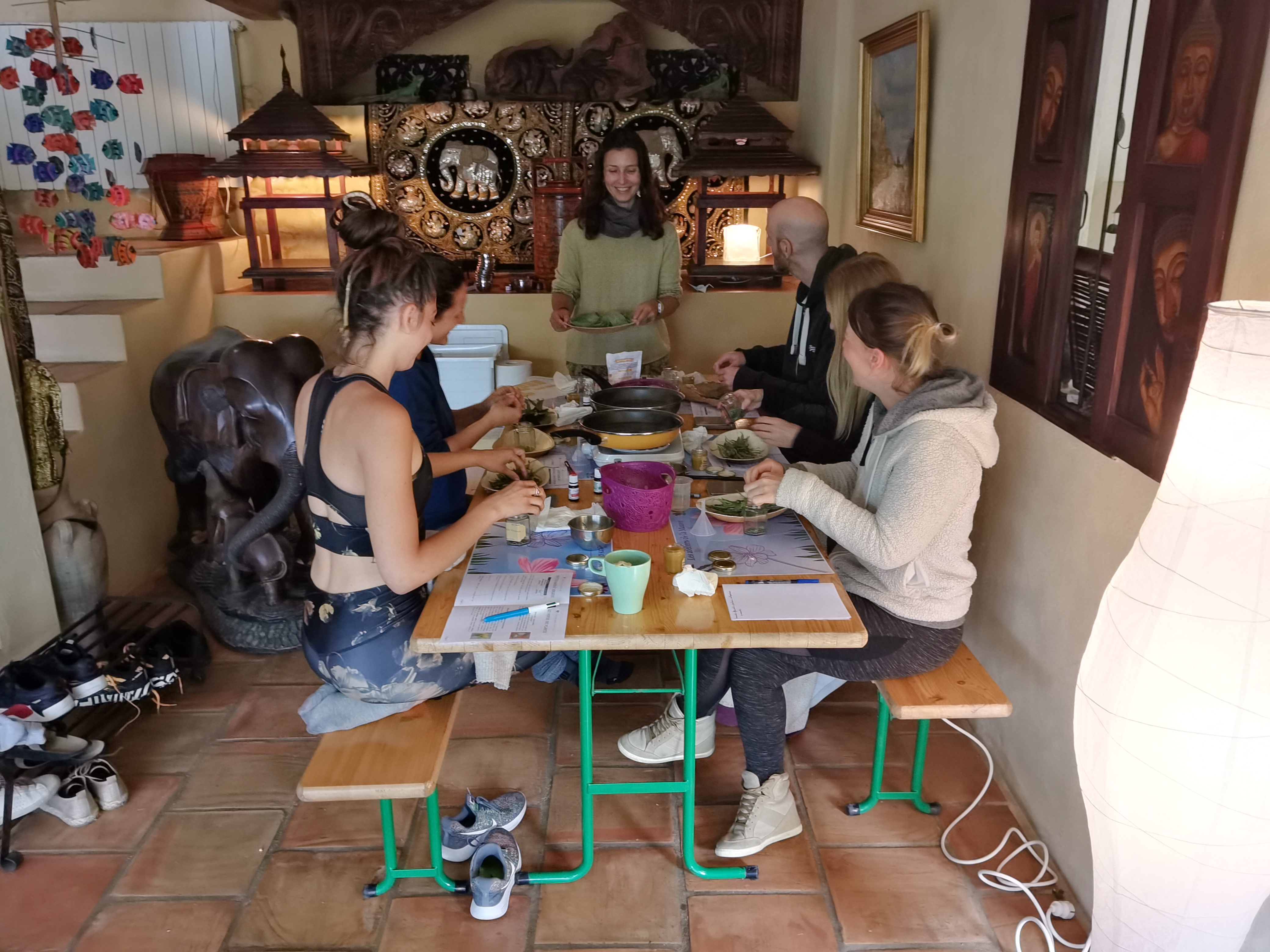 Un groupe motivé et déterminé, des pratiques puissantes pour nous remplir de vitalité et de bonne énergie, le soleil au rendez-vous, la délicieuse cuisine végétarienne, locale et sans gluten d’Eléa, la nature majestueuse des Cévennes ; que demandez de plus ?