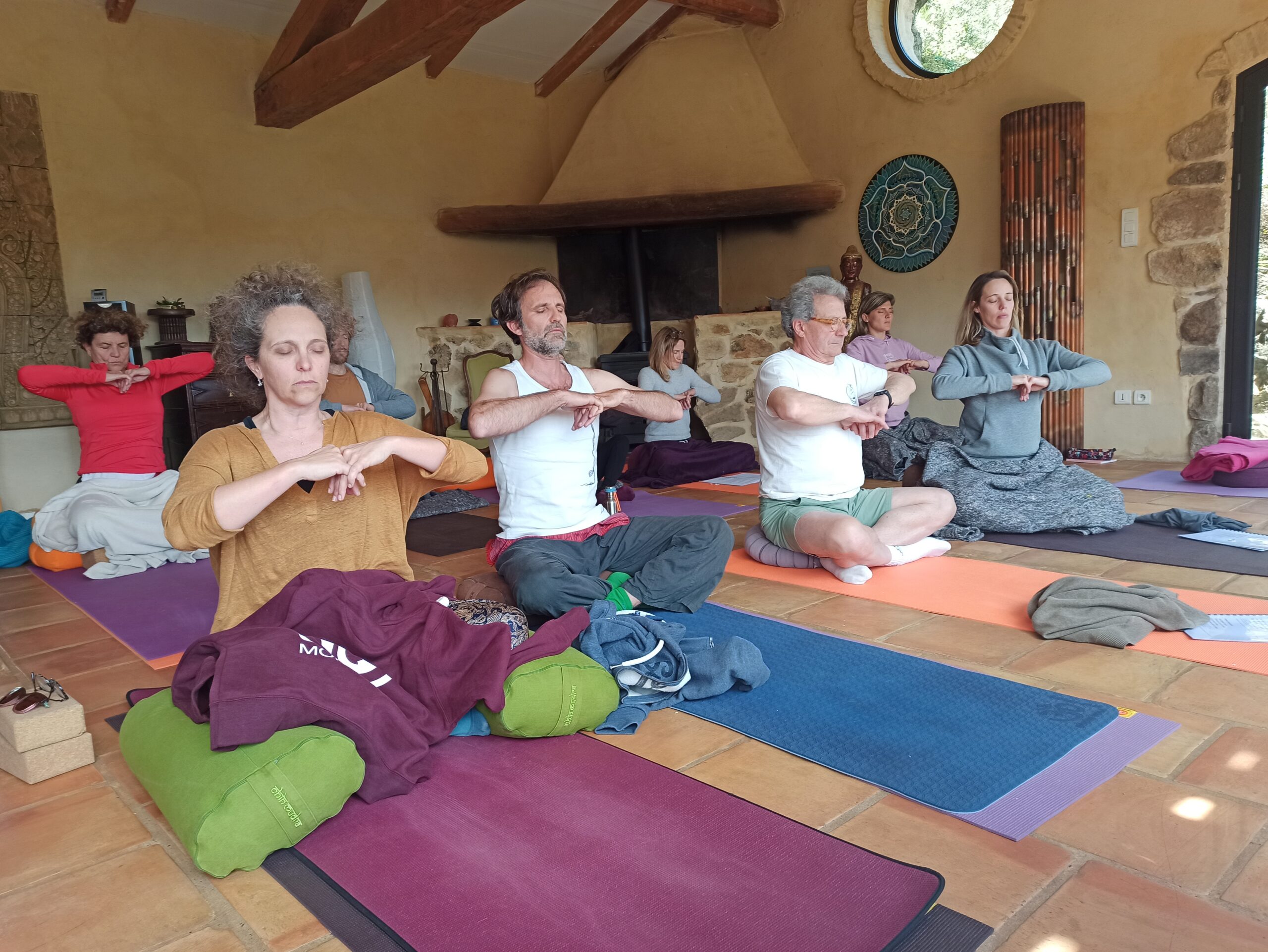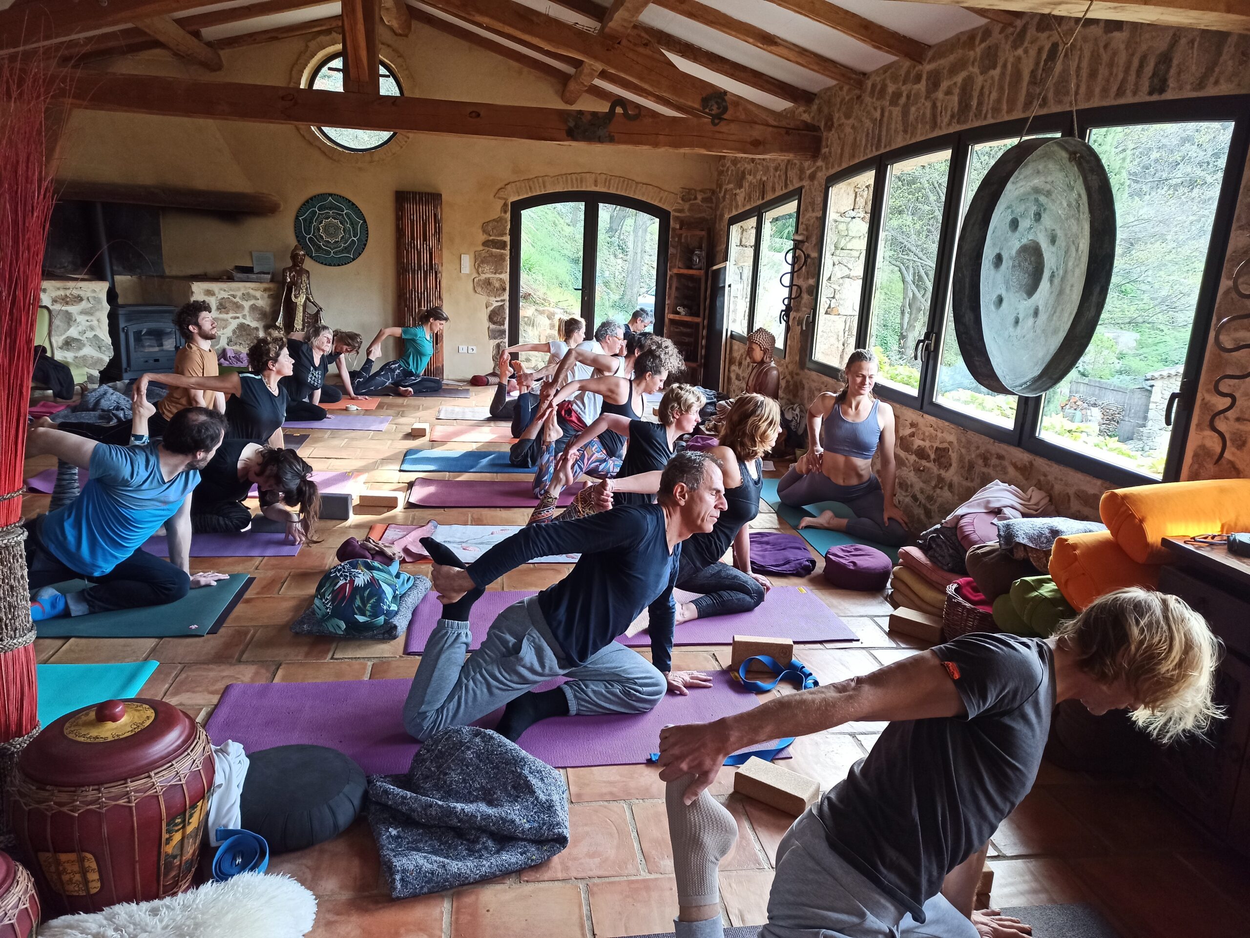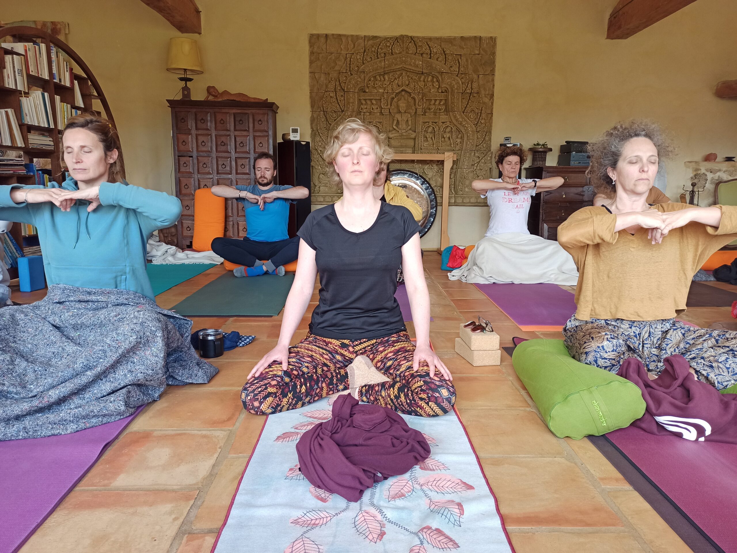 Merci à tous les participants, venus de loin pour certains (deux bretons notamment !), qui ont permis de faire de ce long week-end une parenthèse riche de pratiques yogiques et enchantée. Merci également à Elea pour sa cuisine toujours fine, délicieuse et abondante, et à Laurence pour son lieu si ressourçant.