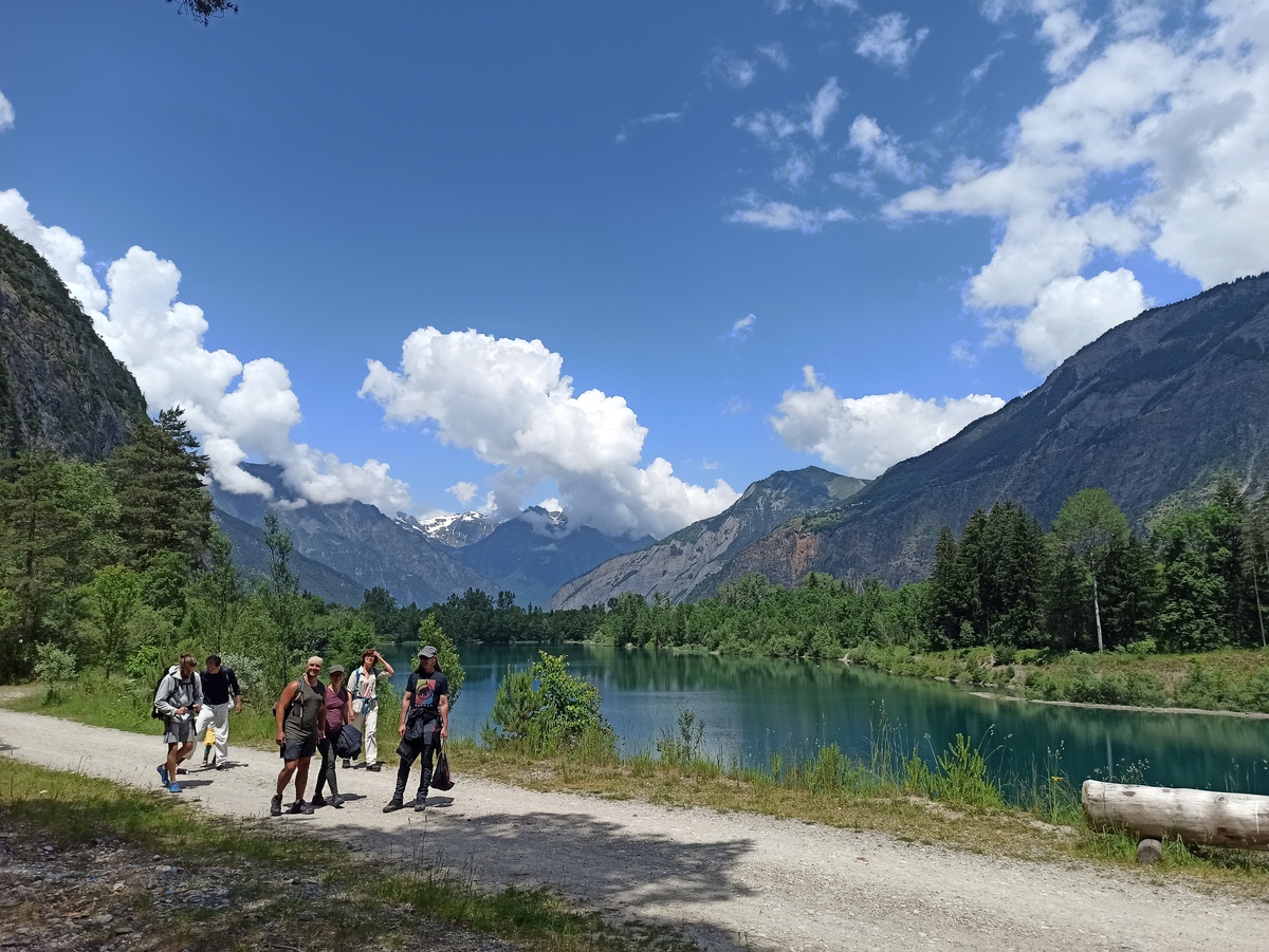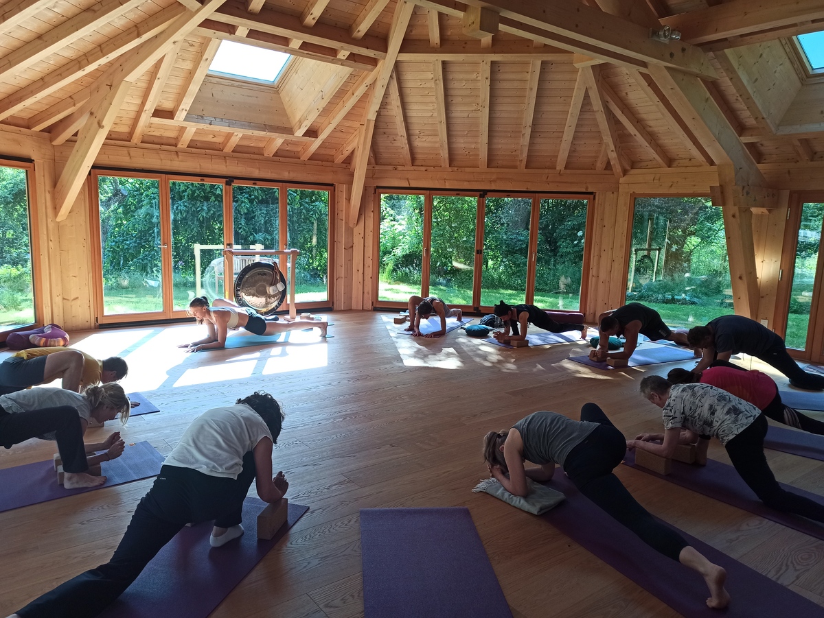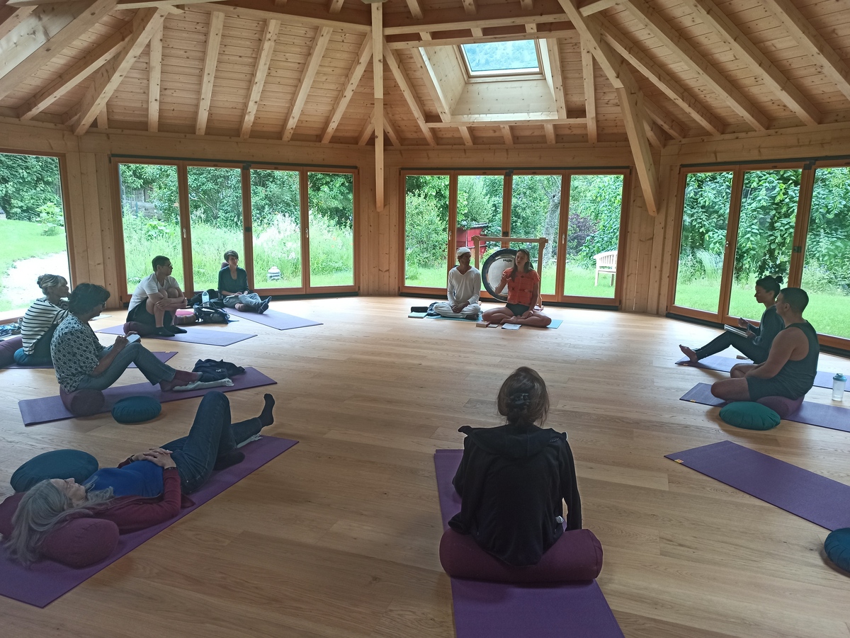 A côté des superbes excursions proposées au cours de la semaine, notamment au Lac De Lauvitel, nous avons profité de la majestueuse salle de pratique avec vue sur les montagnes pour partager de nombreuses et variées pratiques de yoga et méditation avec un groupe attentif et motivé.