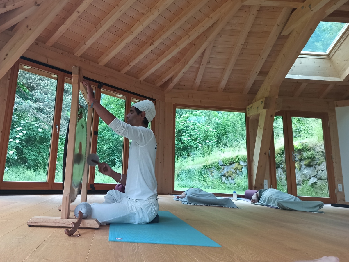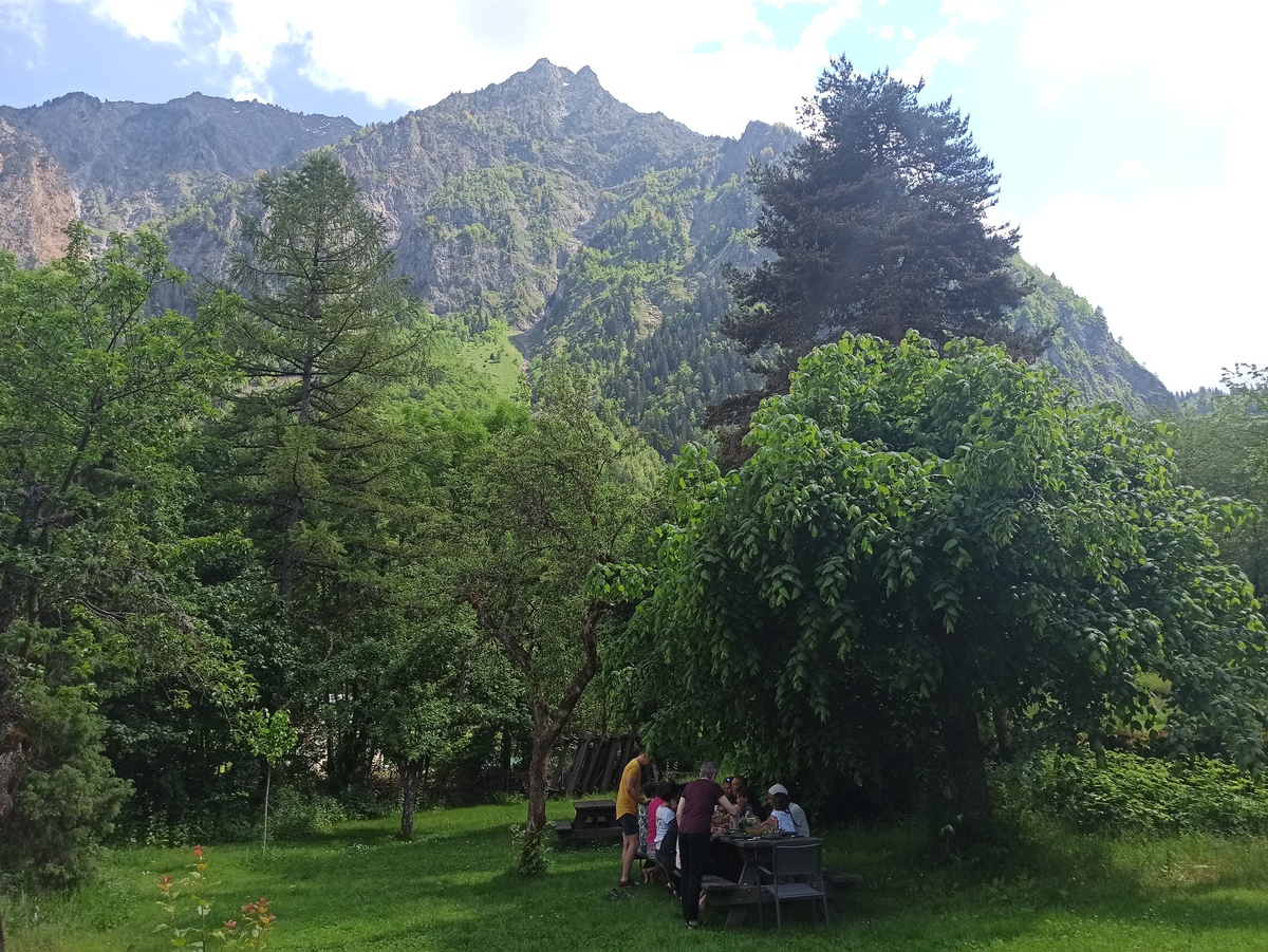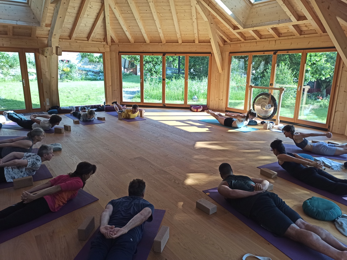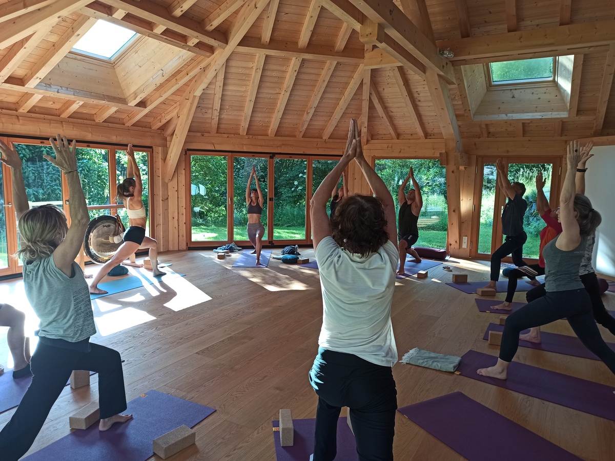 A côté des superbes excursions proposées au cours de la semaine, notamment au Lac De Lauvitel, nous avons profité de la majestueuse salle de pratique avec vue sur les montagnes pour partager de nombreuses et variées pratiques de yoga et méditation avec un groupe attentif et motivé.