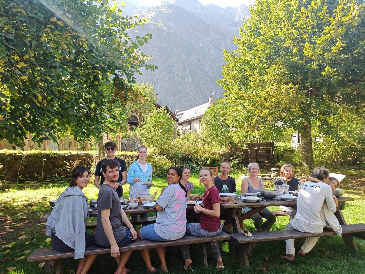 Méditations au lever du jour, pratiques de yoga postural variées, philosophie du yoga, déjeuners succulents dans le grand jardin verdoyant, superbes randonnées accessibles à pied depuis le Lodge, yoga Nidra, bains de Gong, soirées au coin du grand feu de cheminée, massages et soins énergétiques, et même une initiation à l’escalade et une soirée d’anniversaire : nous rentrons ravis de ces 7 jours d’immersion Yoga et Méditation.