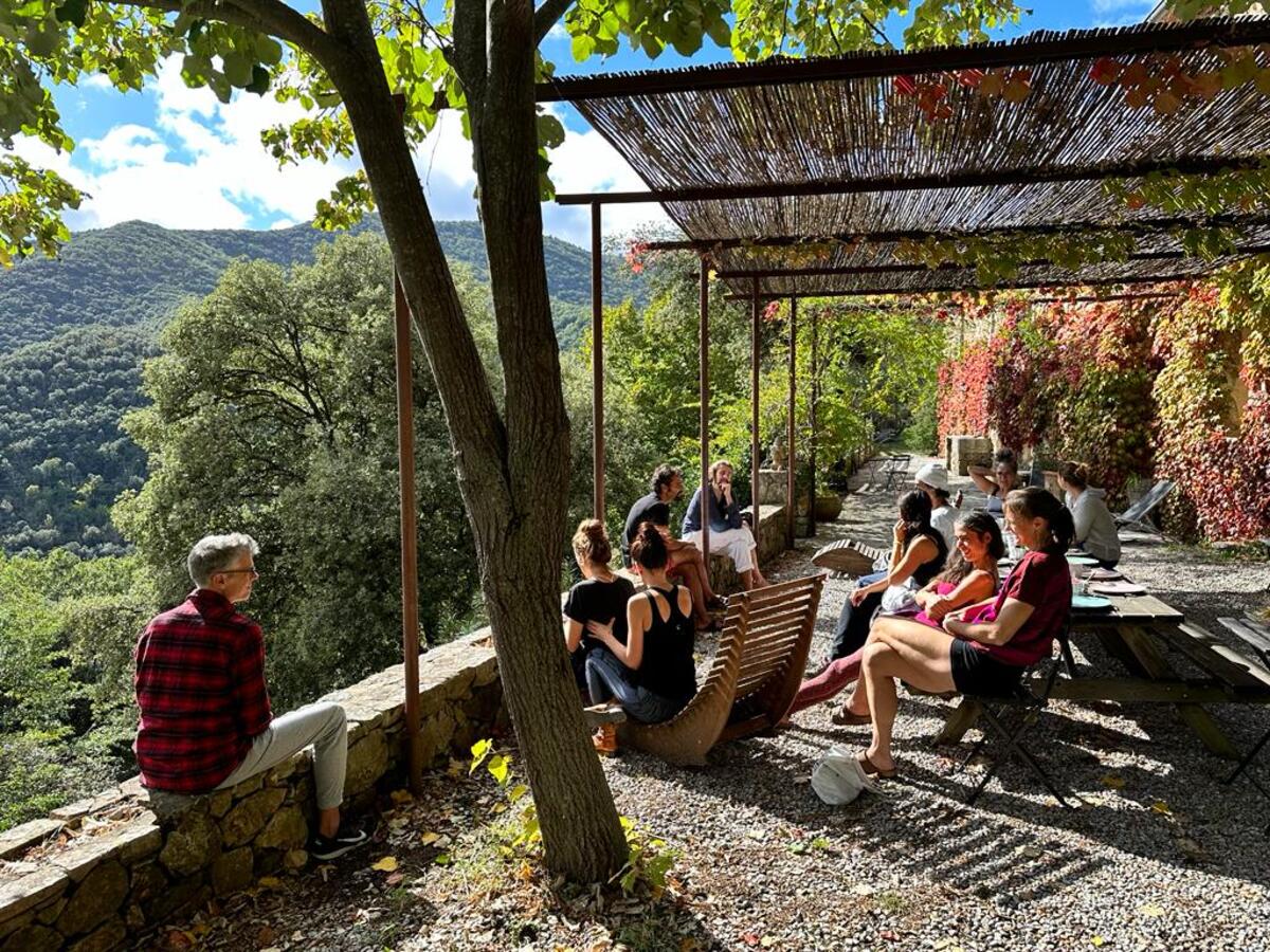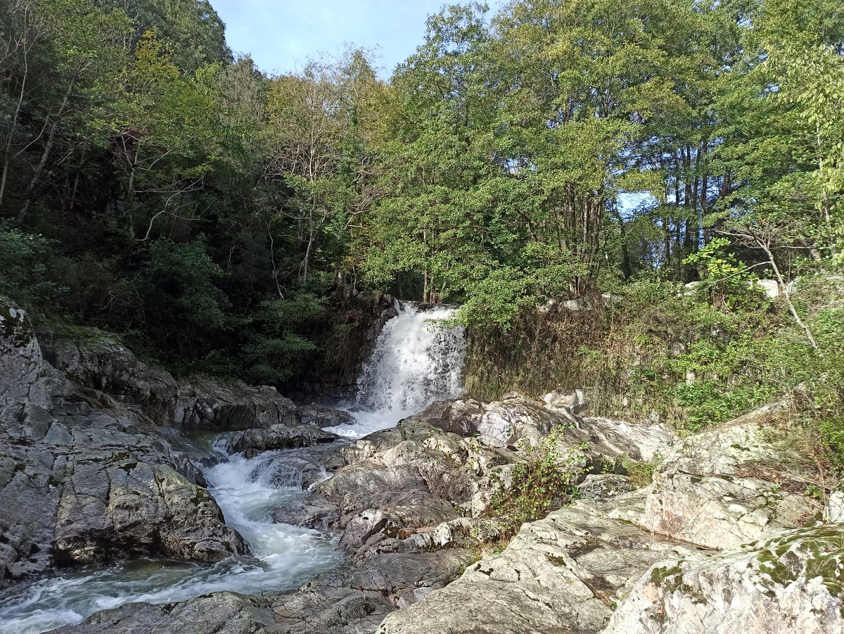 Certain-e-s ont profité des moments de pause pour ramasser les châtaignes fraîchement tombées autour du gîte. D’autres sont allés se baigner à la rivière, à côté de la cascade qui coulait à grands flots après les grosses pluies qui étaient tombées quelques jours auparavant.