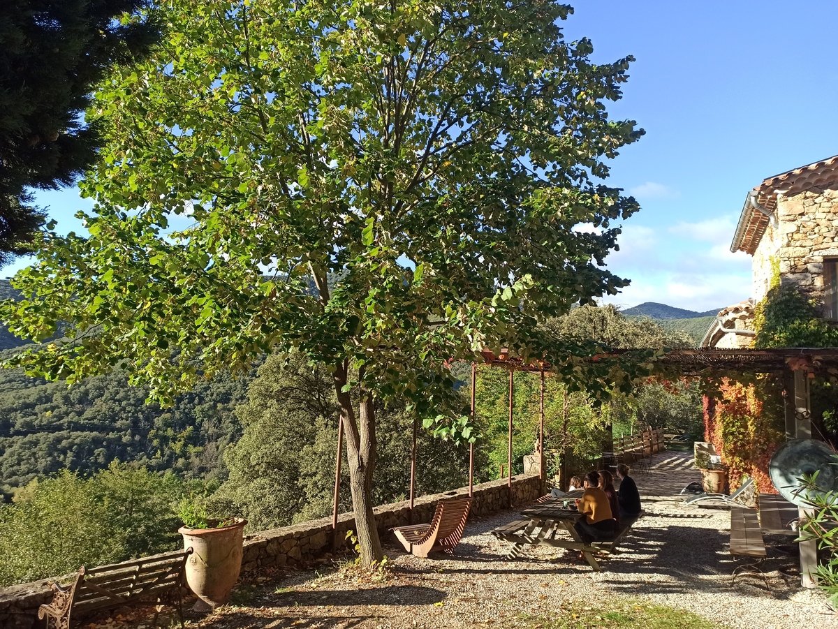 La météo nous a souri : la journée a été particulièrement ensoleillée le samedi, ce qui nous a permis de déjeuner dehors, d’admirer les vues sublimes depuis le gîte sous les magnifiques lumières de l’automne et d’apprécier pleinement les couleurs rougeoyantes des feuillages recouvrant le gîte.