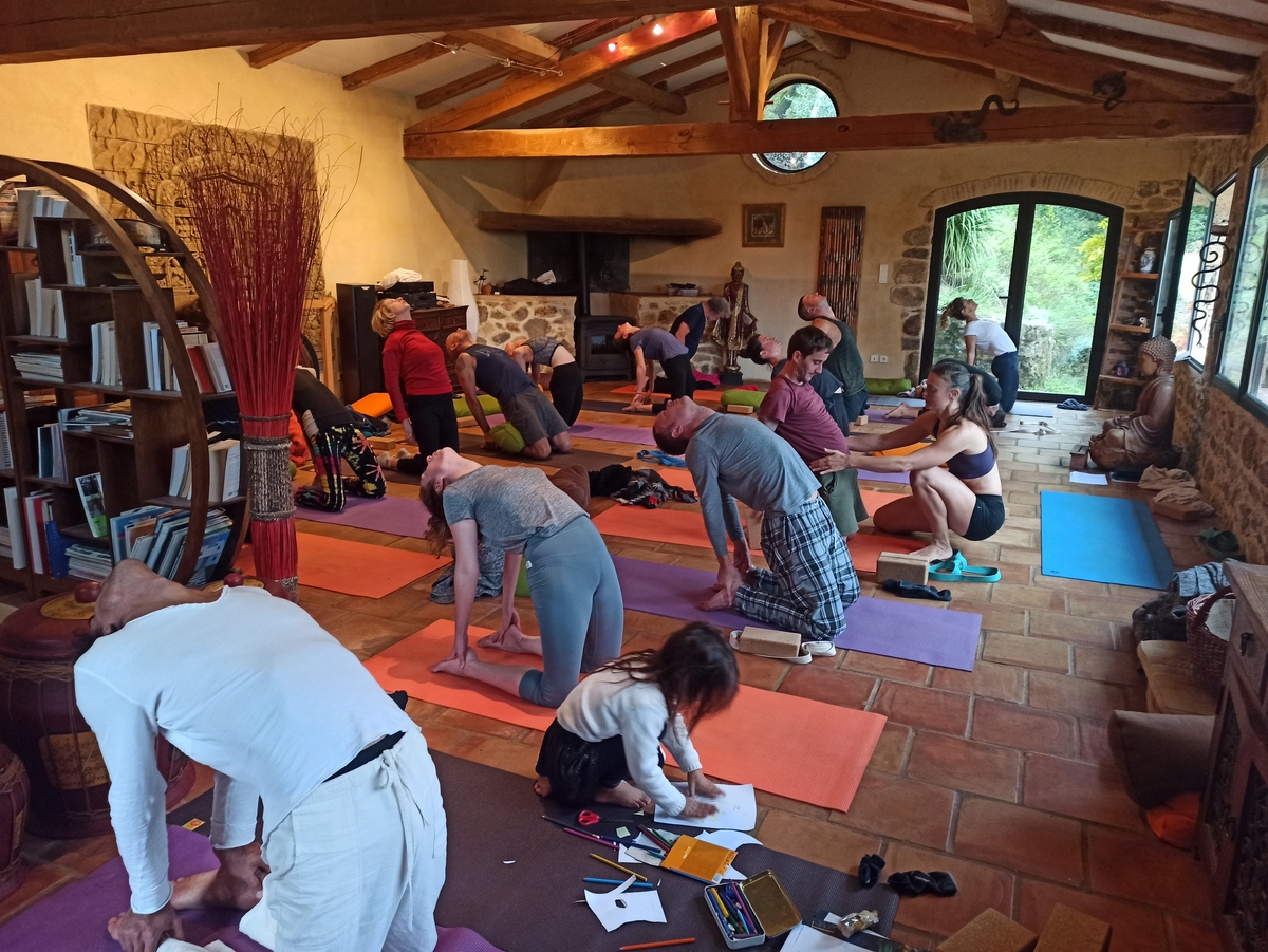 Merci à tous les participants pour ce magnifique week-end prolongé qui vient clore en beauté les retraites de cette année, à Corinne qui se surpasse un peu plus à chaque nouvelle retraite et propose des repas toujours plus savoureux, et à Laurence pour ce gîte si propice à la transmission de nos enseignements Yoga et Méditation.