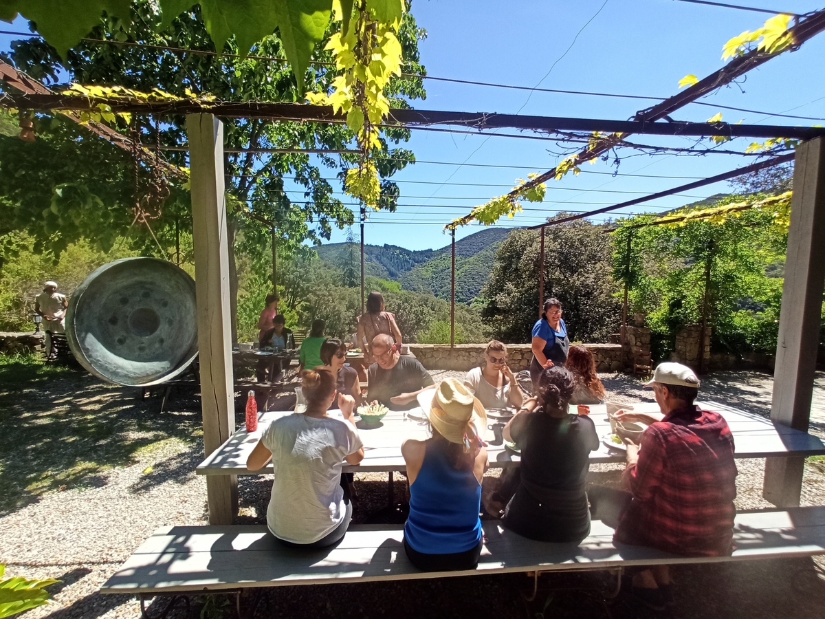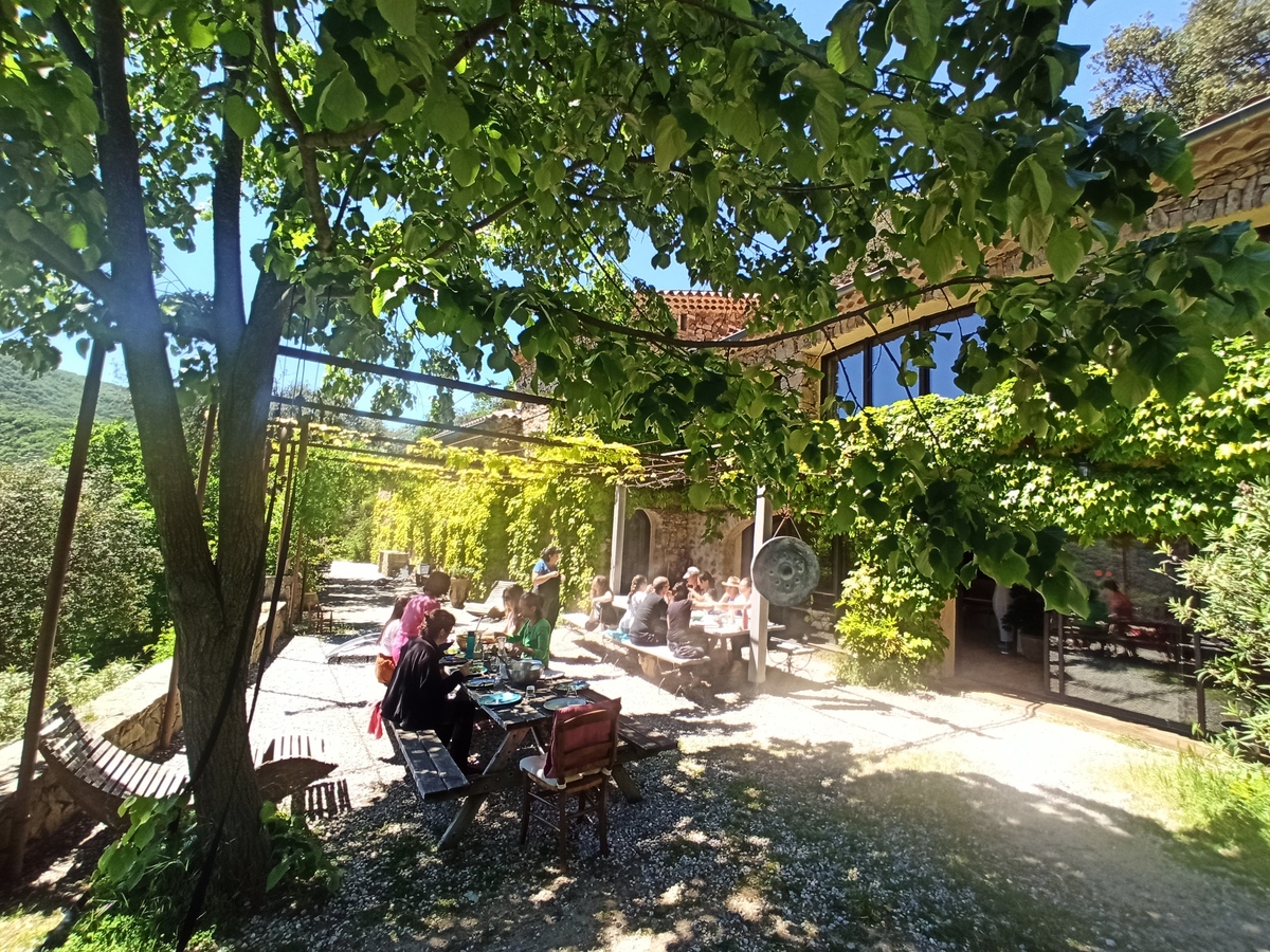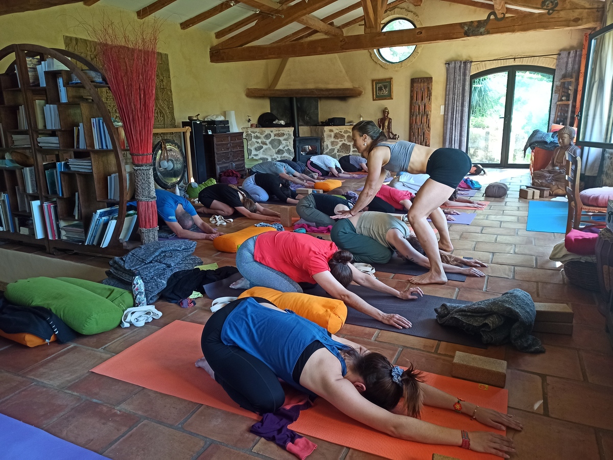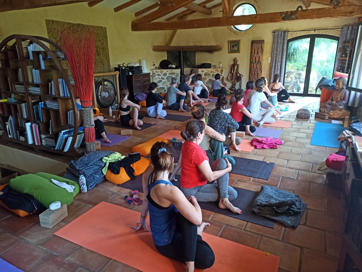 Cinq jours de soleil et de températures printanières, de pratiques variées de Yoga, Méditation, de discussions autour de la philosophie du yoga ou encore de l’anatomie appliquée au yoga, de repas à l’extérieur devant la somptueuse vue sur les collines cévenoles, de baignades dans la rivière remplie des dernières pluies et de discussions passionnées.