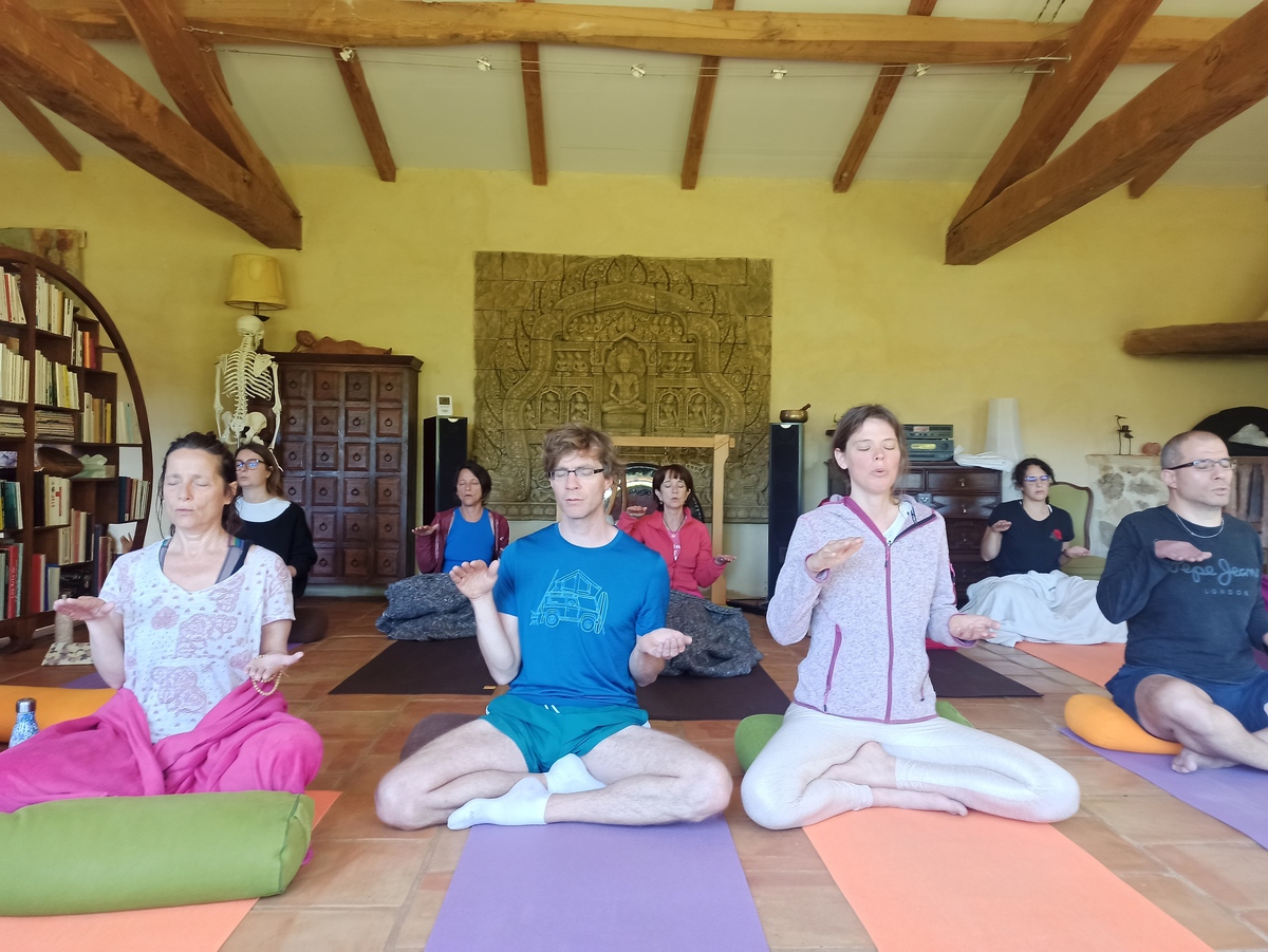 Après une semaine de pluie assez inhabituelle pour la saison et la région, le soleil a, à notre plus grande joie, repris le dessus le jour de l’ouverture de la retraite Yoga et Méditation que nous proposions à l’occasion du long week-end de l’Ascension. Il a brillé sans discontinuer jusqu’à l’heure des aurevoirs, dimanche dernier.