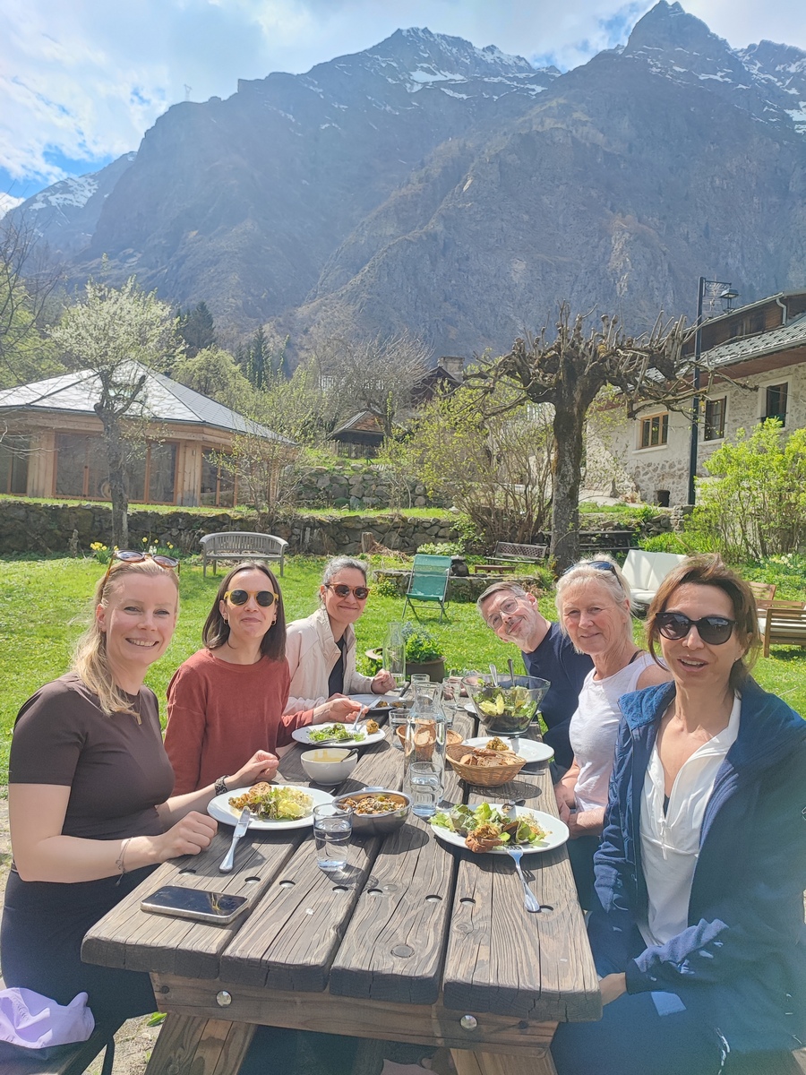 La taille intime du groupe a permis de créer une belle alchimie. Des moments précieux se sont tissés autour des randonnées, des temps de pratique et des repas savoureux de Corinne — hauts en couleur et en générosité.