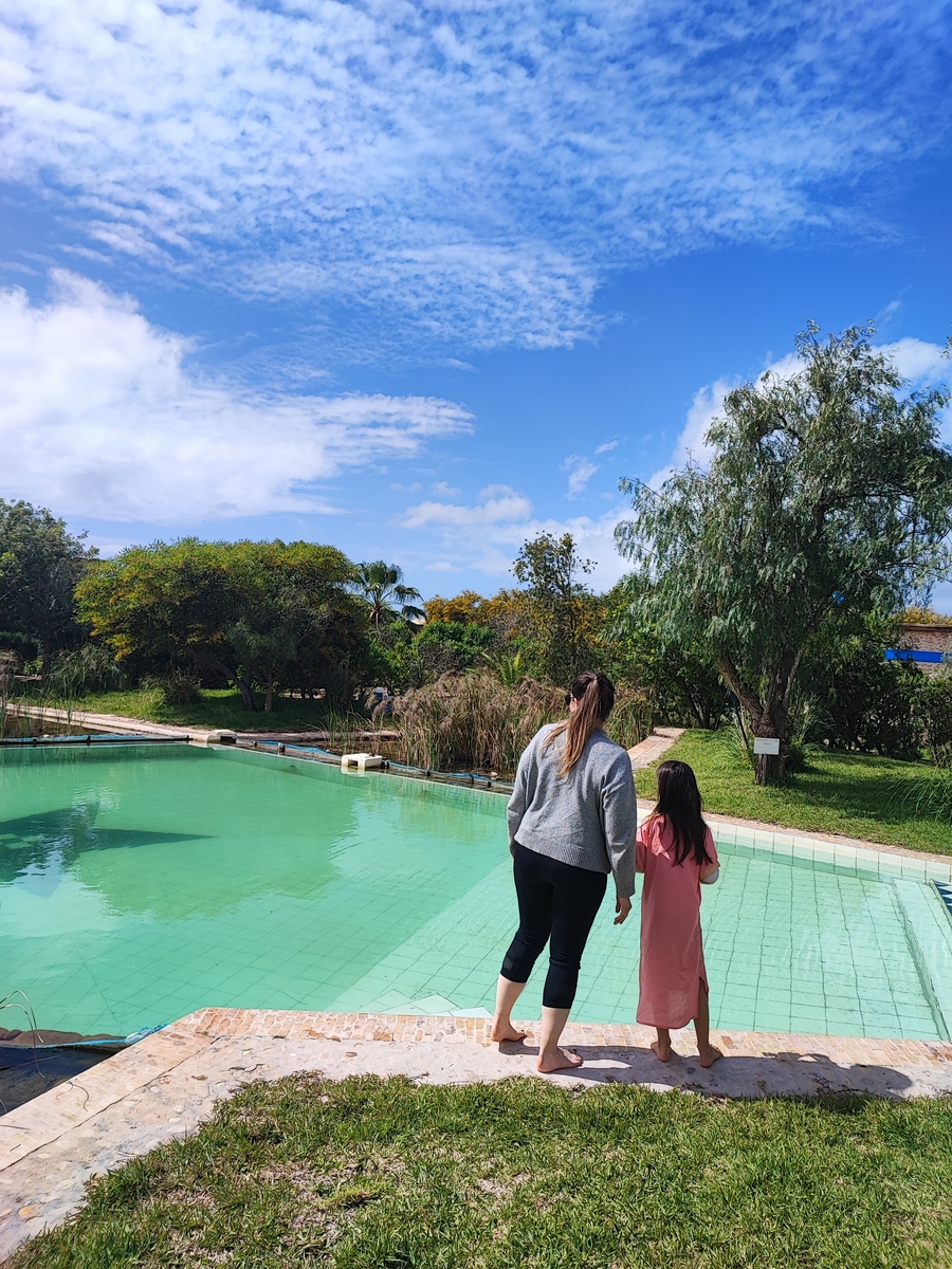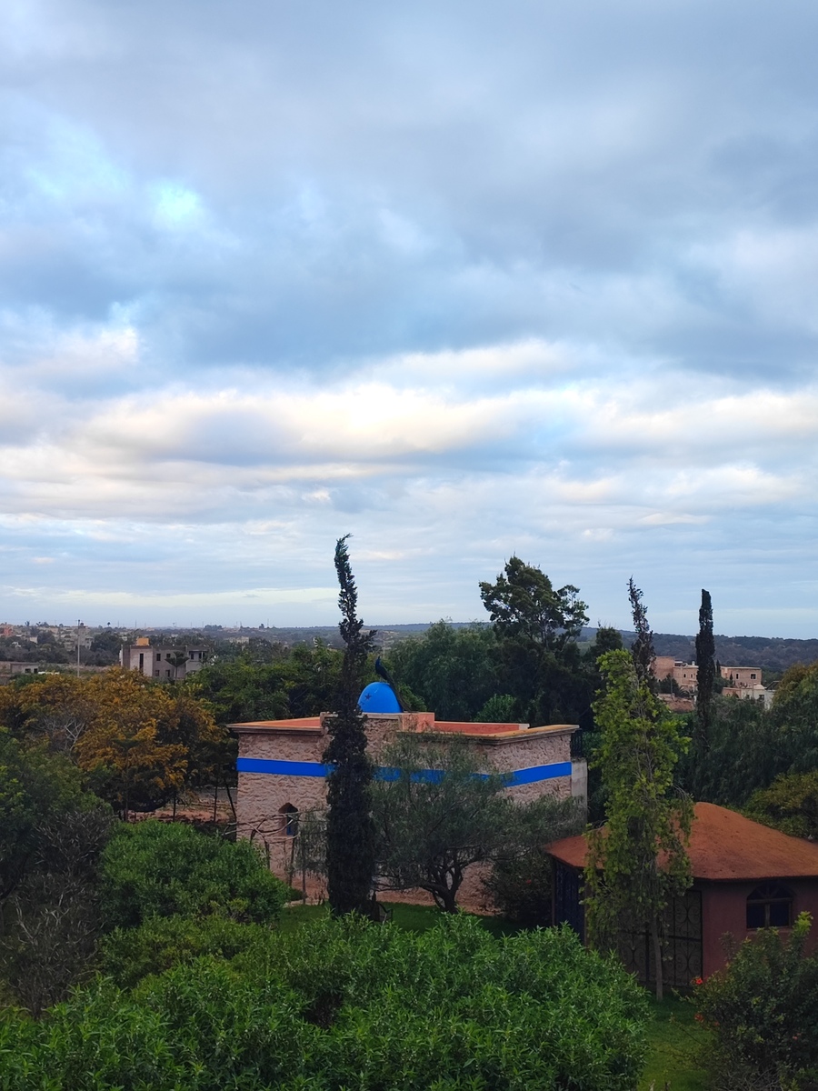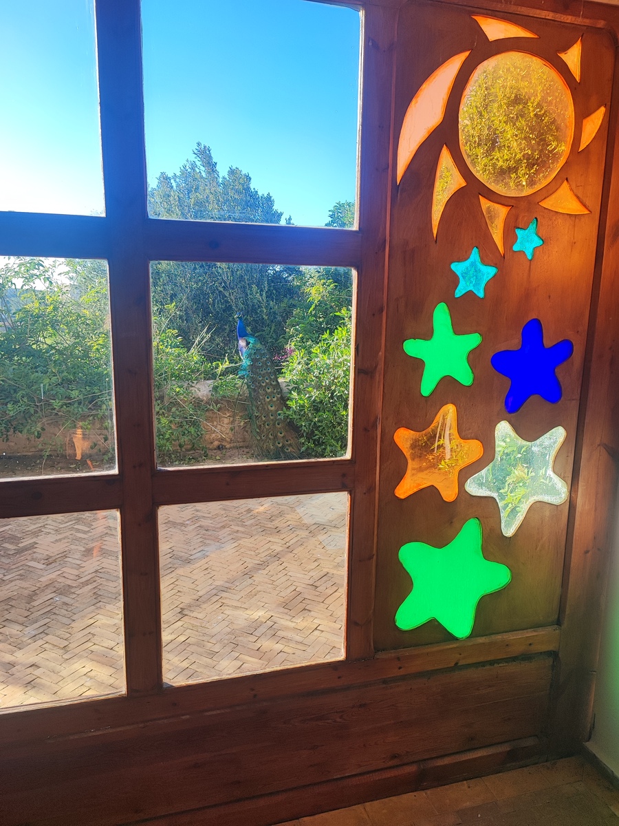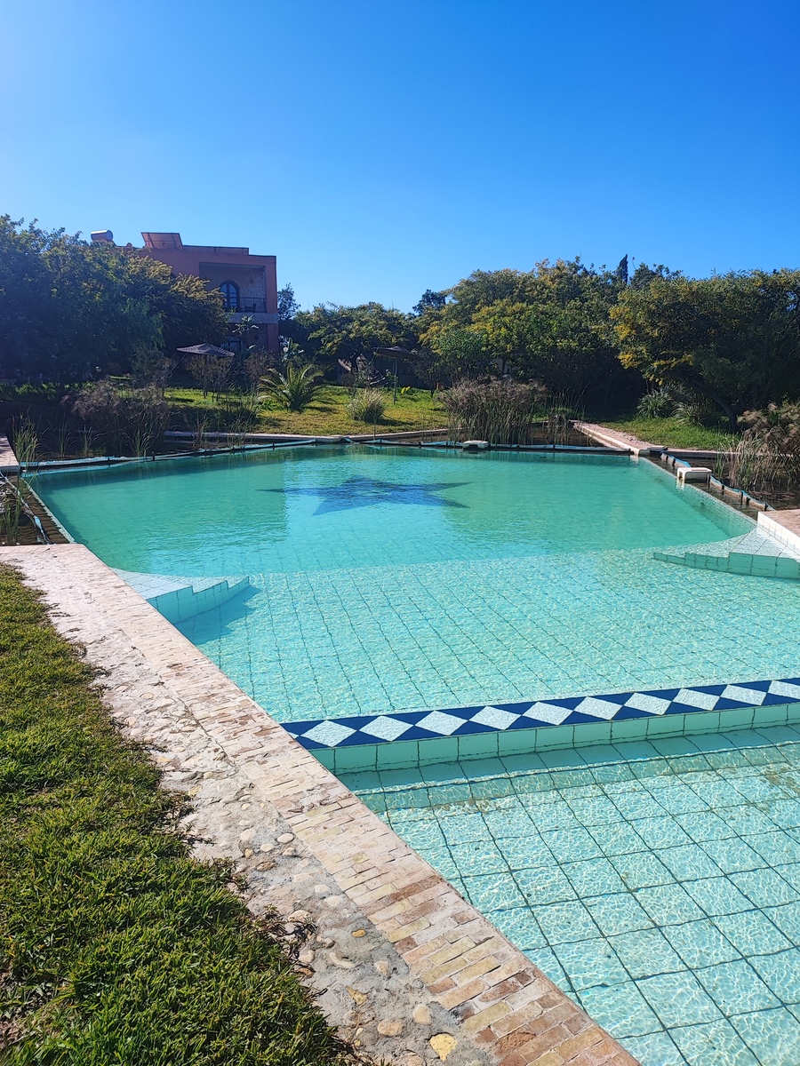 Nous avons été accueillis au sein du magnifique centre de ressourcement Douar Noujoum. Un lieu hors du temps, propice au travail intérieur. Un endroit unique, avec sa piscine en forme de pentagramme, ses hébergements inspirés des traditions marocaines, ses grandes salles de pratique…et ses paons, libres et majestueux, qui nous ont souvent honorés de leur présence.