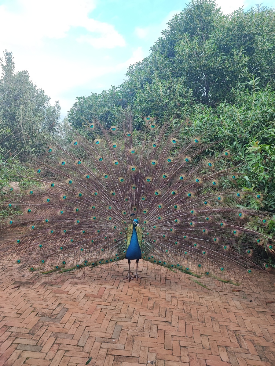 Tout au long de la semaine, nos pratiques ont été accompagnées d’une présence aussi inattendue que poétique : presque chaque jour, les paons se joignaient à nous devant les grandes baies vitrées de la salle de pratique, ajoutant une touche de magie à nos séances.